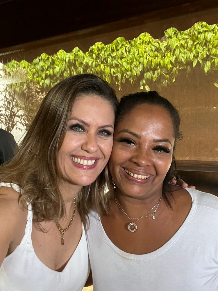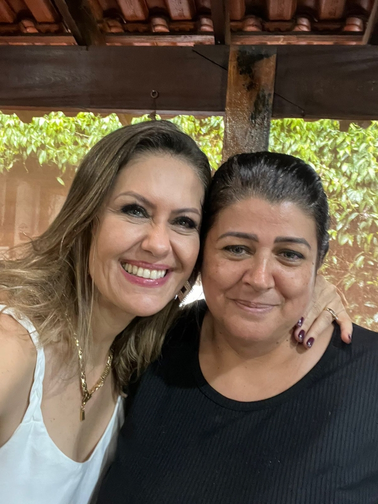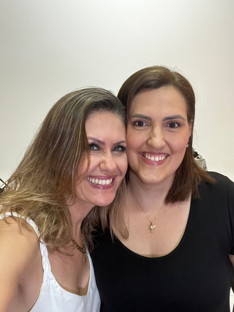 Beatriz Rodrigues da Cunha levou o seu abraço mais especial à sua comadre em comemoração aos 25 anos de estúdio