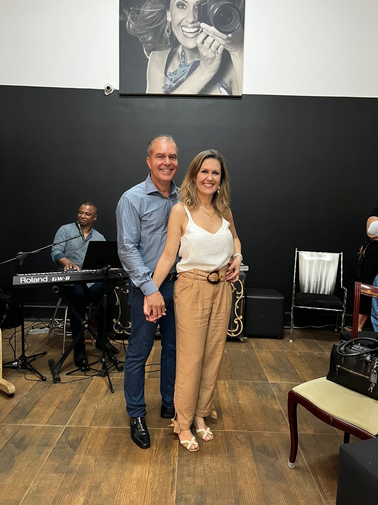 A alegria de comemorar o trabalho que trouxe muitos amigos estava estampada nos sorrisos, inclusive nos nossos. Com sua licença, Marise Romano e Jairo Oliveira