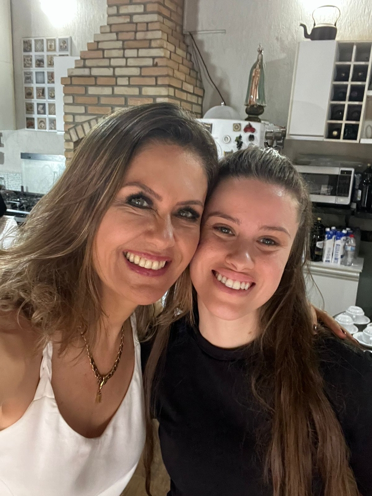 A renomada cirurgiã dentista Andréa Nunes Ferreira foi abraçar sua madrinha Inês Ferreira Gil no café do #mariseromanostudiophoto25anos