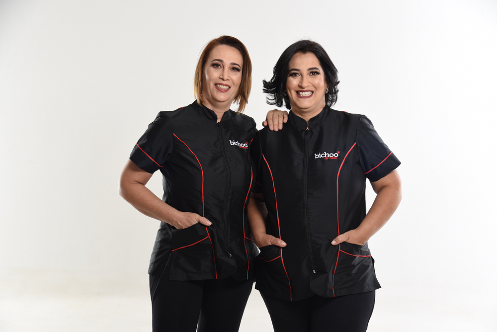 A empresária Renata Marchiori Vieira e a groomer Vanessa Marchiori comandam a empresa Bichoo de Casa, especializada em banho, tosa e hospedagem de cachorros