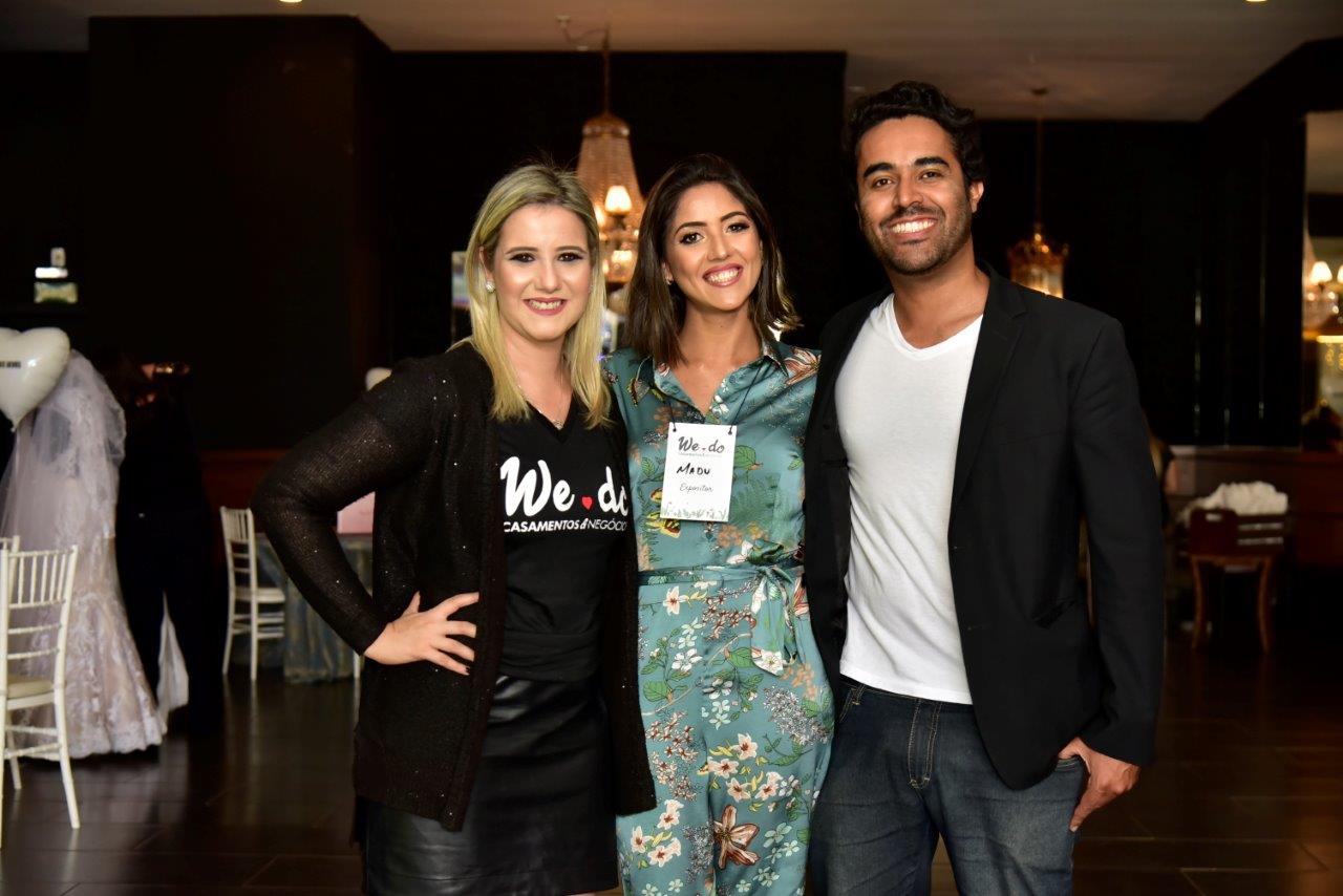 Organizadores do evento We do, Hilma e Wesley, junto à cerimonialista Madu, responsável pela organização do evento que aconteceu no Parthenon no dia 22.