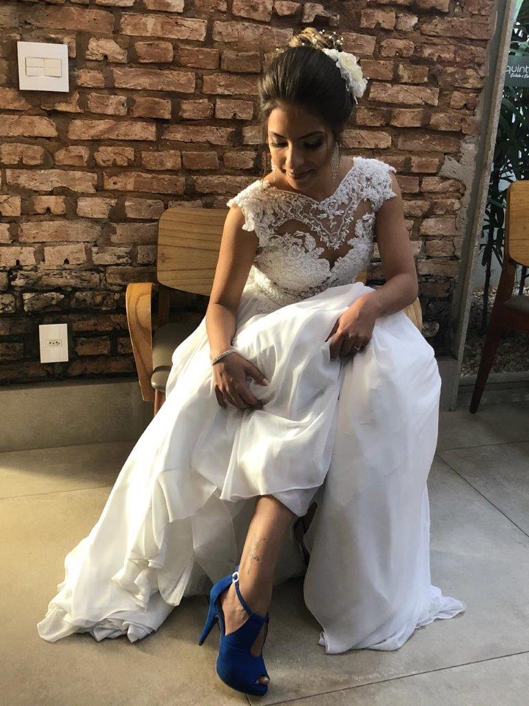 Gabriela Martins foi fotografada pela equipe Requinte Cabelo e Corpo para registrar sua alegria em escolher este salão de cabeleireiros em seu dia mais feliz.