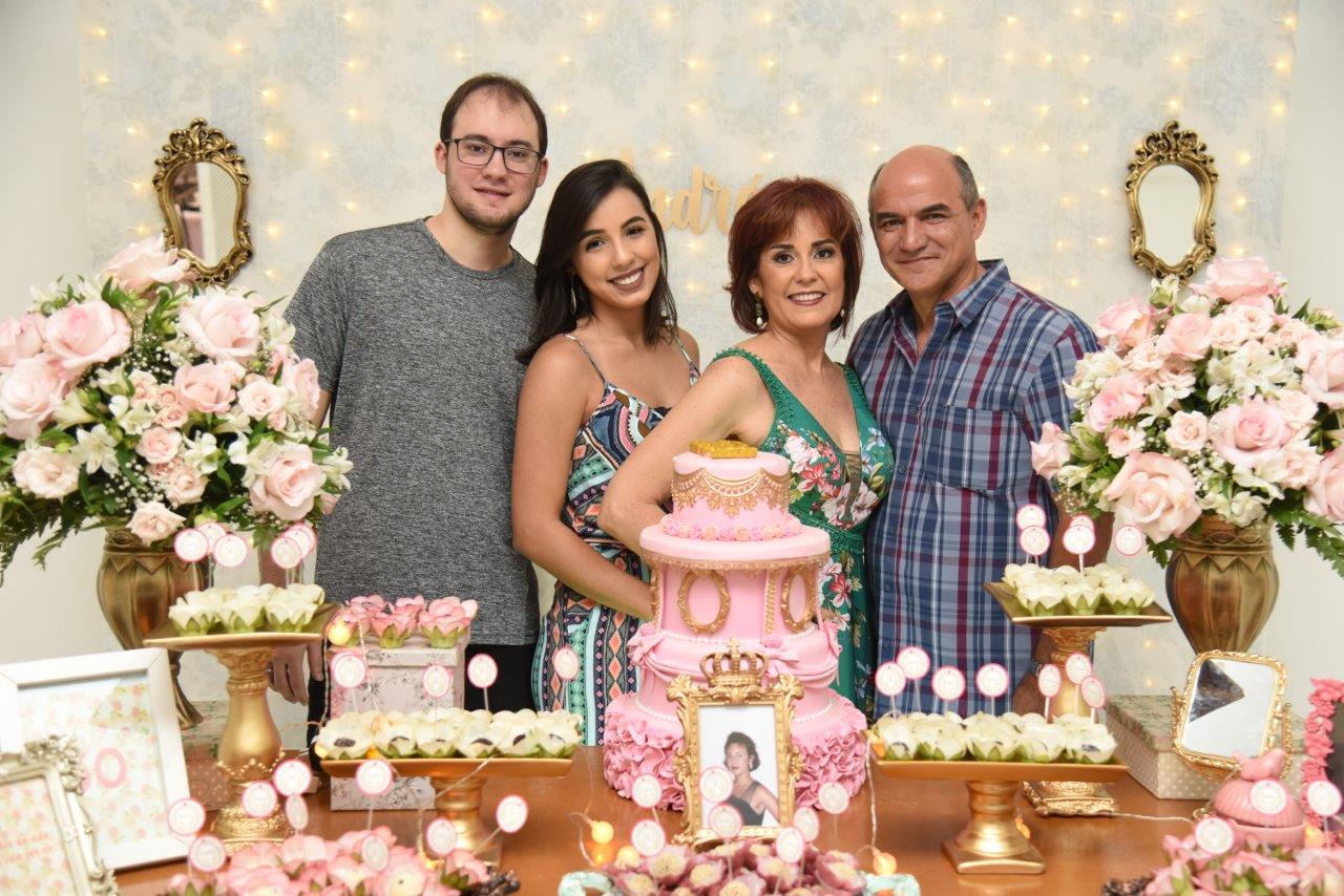 Andréa Vieira da Carvalho Felix comemorou seus 50 anos ao lado de seus filhos Giovanna e Vinícius e seu esposo Valcis Felix no dia 13 de outubro no Buffet Deauville.