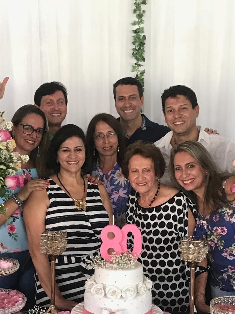 Lourdes da Silva Santos comemorou 80 anos com seus filhos Luceni, Ronan, Luciana, Luciene, Roberto, Lucimar e Gilmar com festa muito feliz no dia 12.