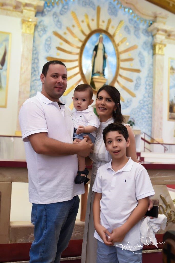 Davi Ribeiro Sbroia foi batizado no dia 10 de junho na Medalha Milagrosa, junto dos pais Paula e Raul Sbroia e de seu irmão João.