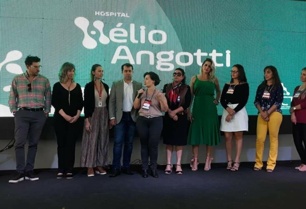 Direção do Hospital Hélio Angotti, IEATM e guerreiras. Alessandra Roso, Michel Eduardo Silva, Diretor Institucional do hospital Hélio Angoti e Liana Marzinoto.