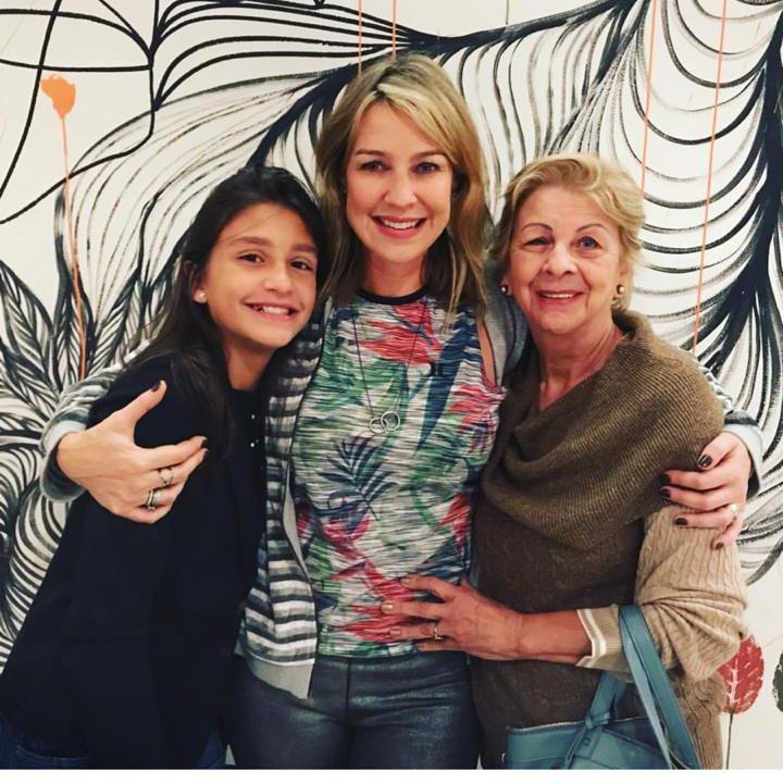Luisa e sua avó Letita Junqueira foram abraçar a atriz Luana Piovani após sua apresentação em Uberaba com a peça “Ele ainda está aqui”, no Sesiminas.