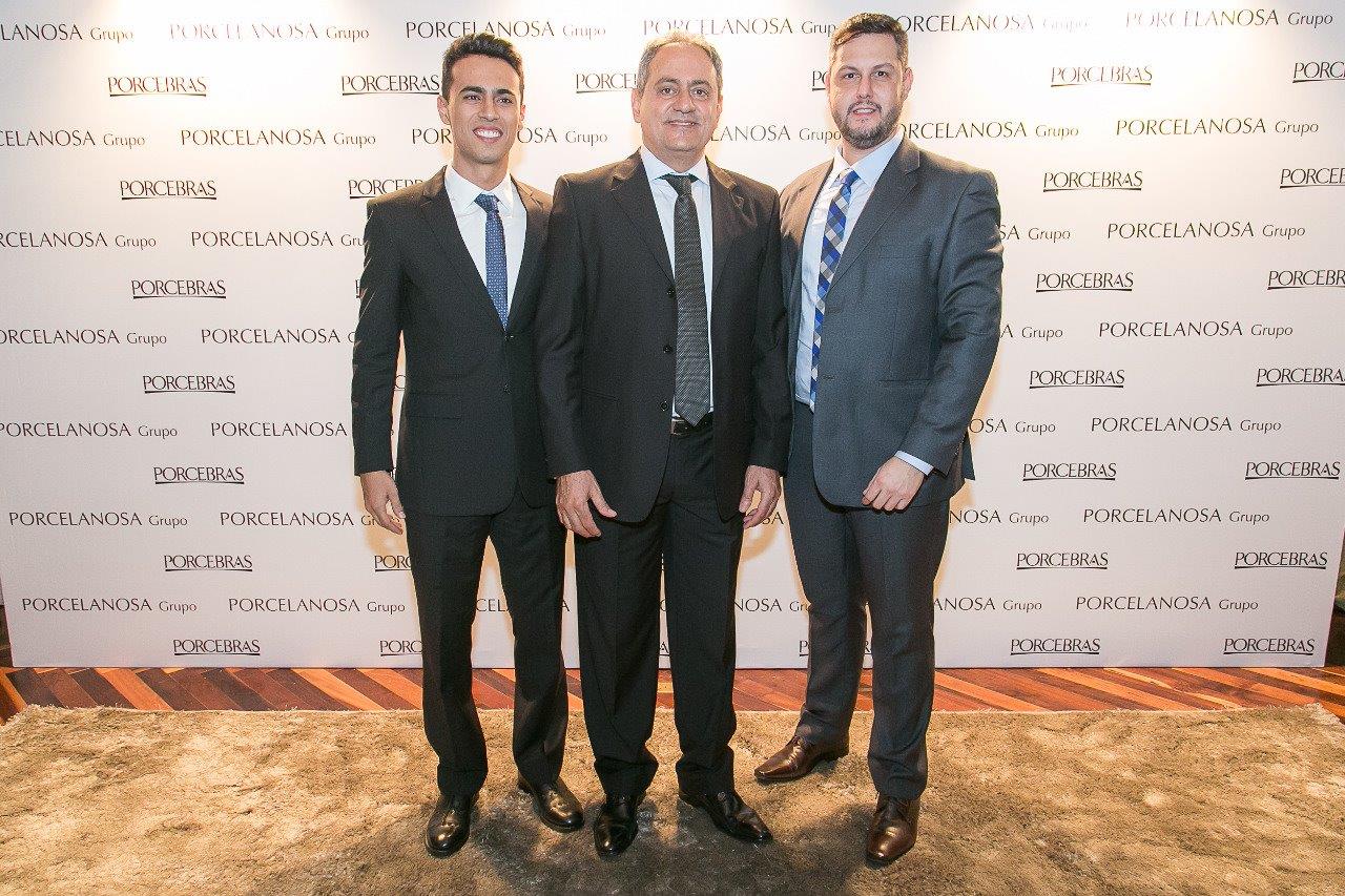Felipe Mattar, Elzo Calixto Mattar Junior e Lauro Ribeiro estiveram em Curitiba para a inauguração do show room da Porcelanosa, de Nelson Marinelli.