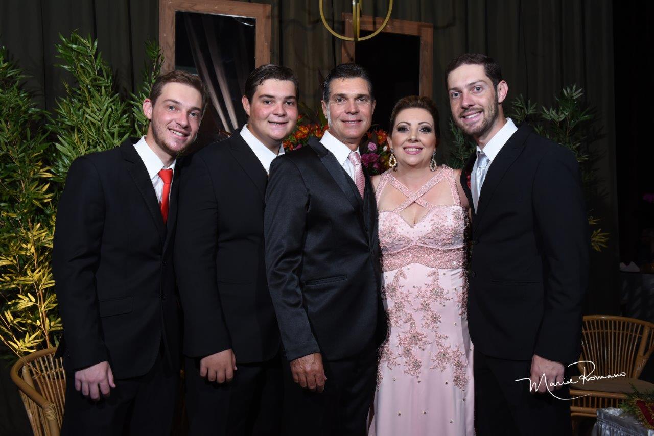 Sempre em harmonia, Keila e Arlei curtiram a festa ao lado dos filhos Gustavo, Henrique e Lucas.