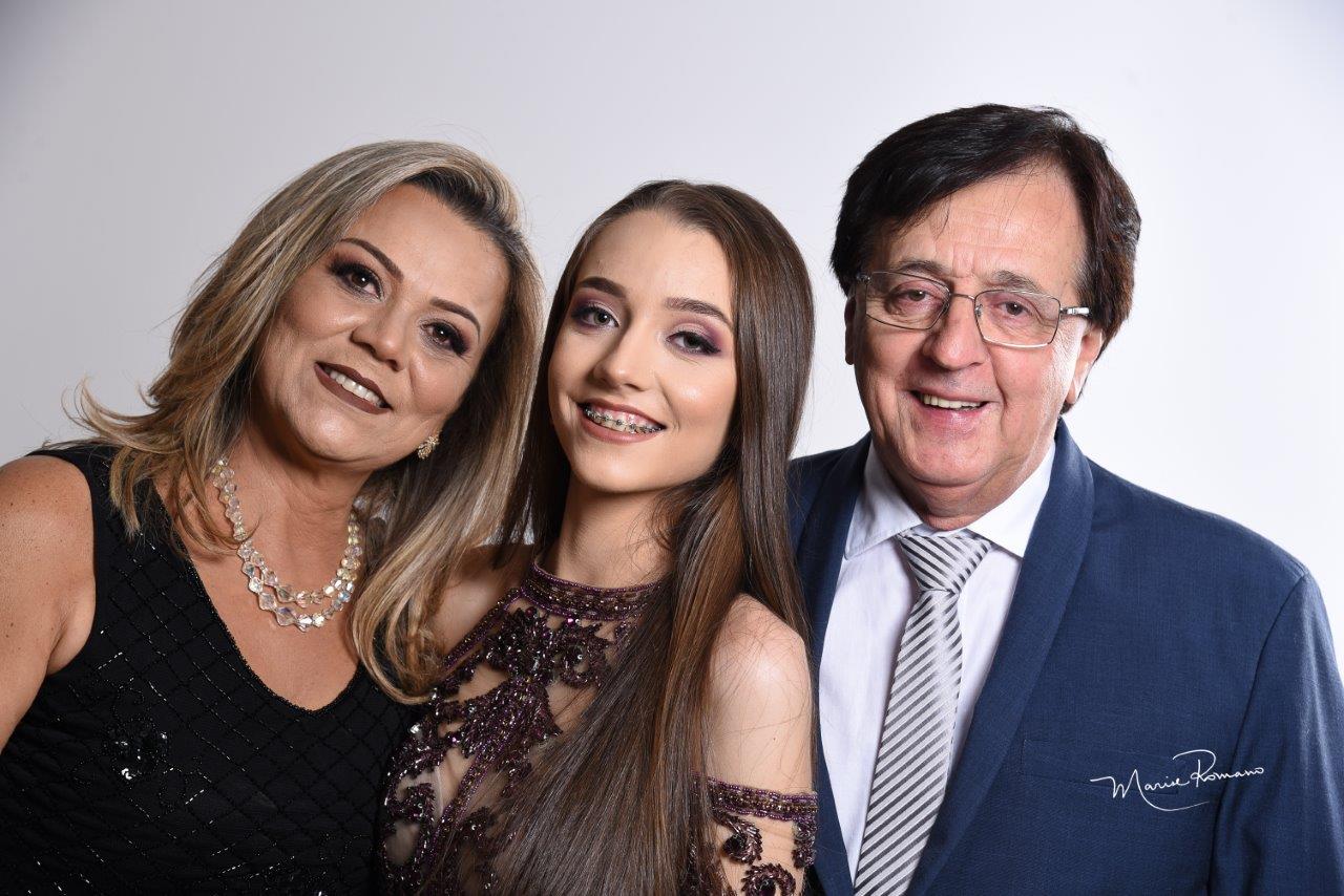 Entre seus pais Eliana e Euler de Lima Ribeiro, a lindíssima Verônica Quinareli Ribeiro colore a coluna social de hoje.