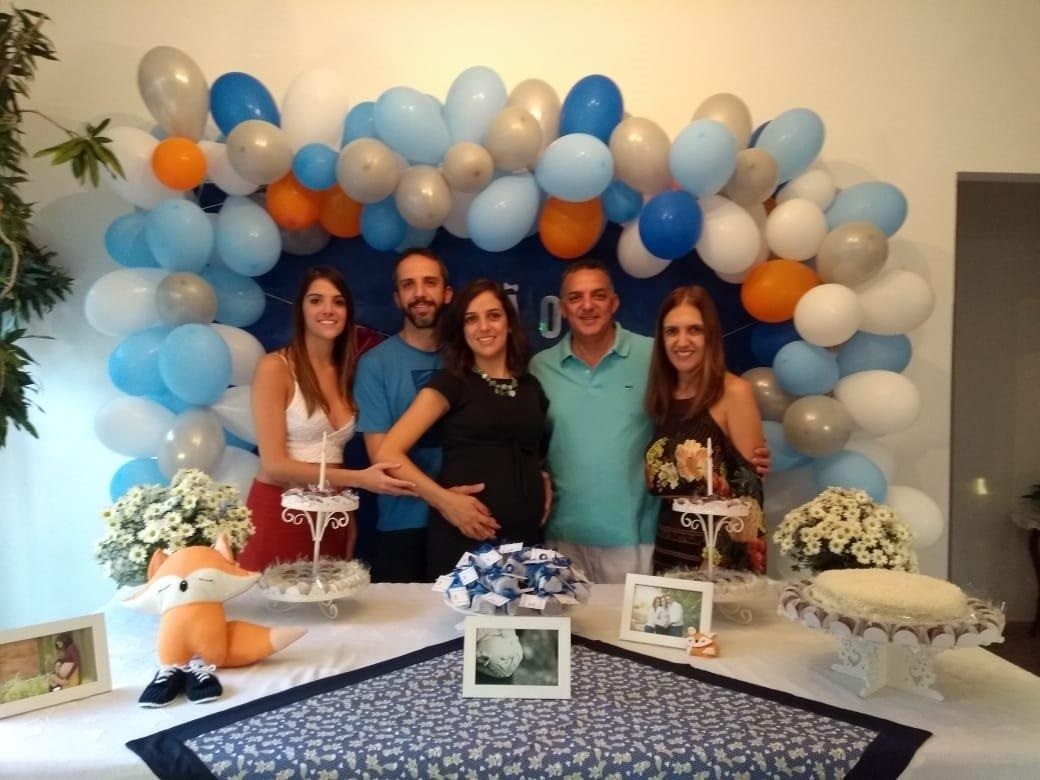 Nicole, Daniel, Alana, Afrânio e Patricia fizeram o Chá de Bebê em recepção íntima para curtir a chegada de João.