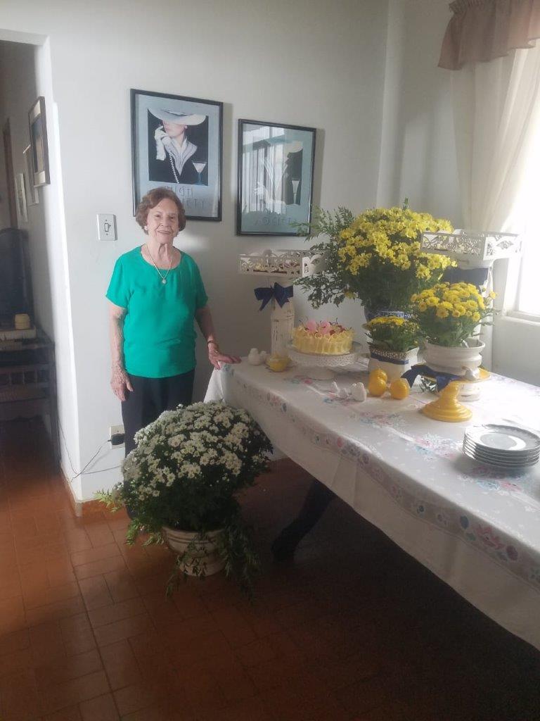 Olinda Turati Leitão fez 92 anos e ganhou festa do filho Eurípedes, da nora Lucia e dos netos Ana Carolina e Fernando Borges Leitão .
