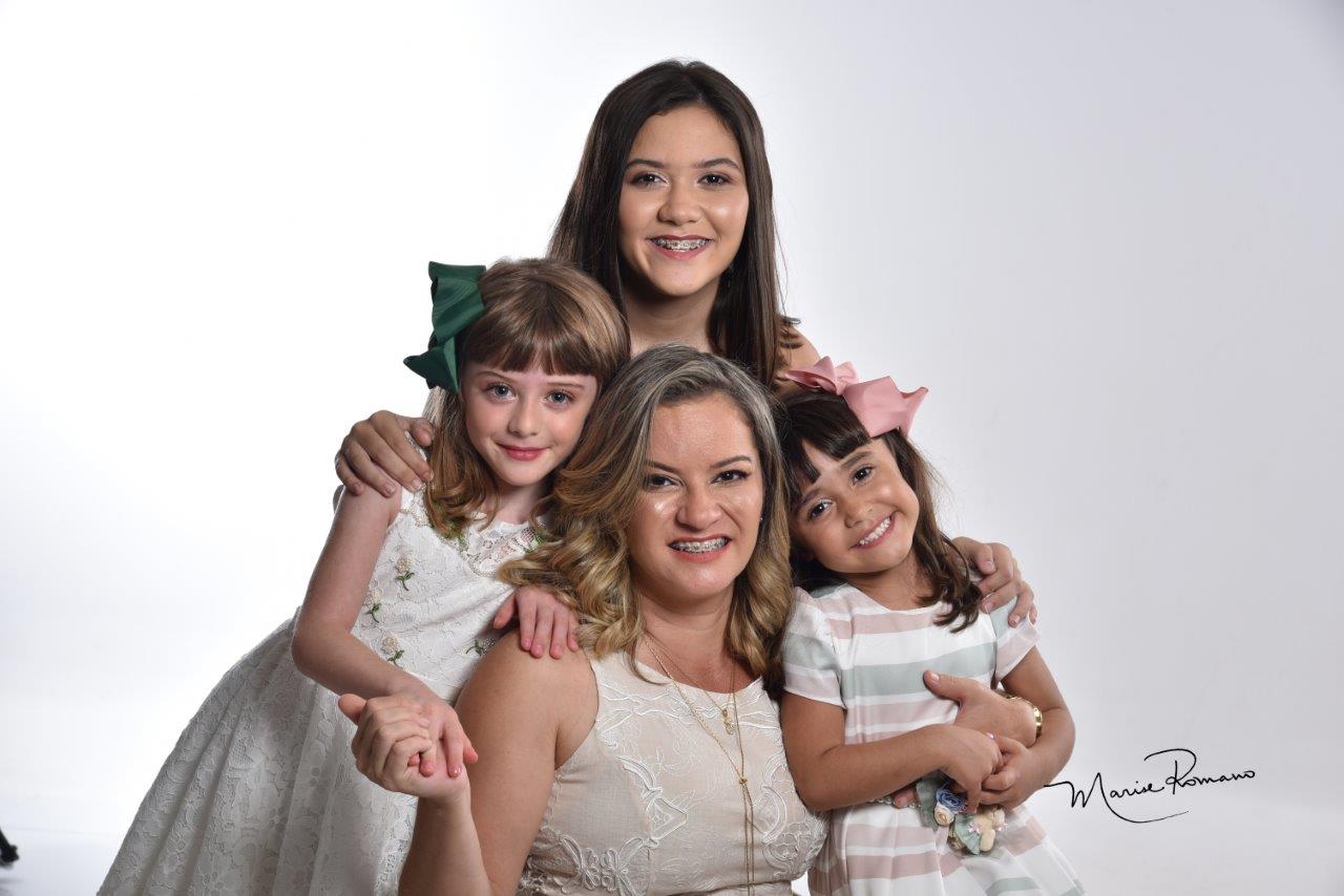 Dra. Cristiane Beatriz, cooperada da Unimed Uberaba, recebe o amor das filhas Júlia, Luísa Maria e Ana Carolina.