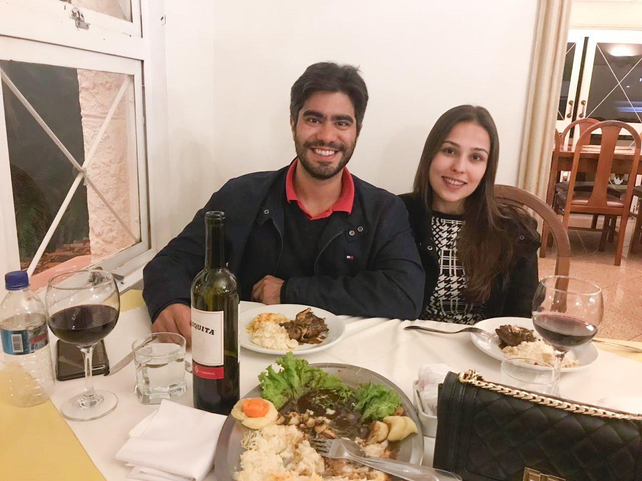 Médicos Henrique Coraspe e Marcela Farid curtem a deliciosa comida do restaurante dos Hotéis Tamareiras, aberto para café da manhã e jantar