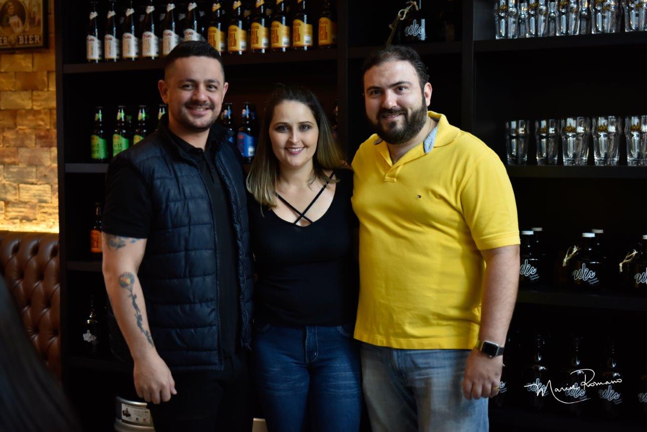 Pablo Carvalho e seus sócios Daniele e Renato Boscarato comemoram o sucesso da inauguração da Gordo Brew Cervejas Artesanais na última sexta