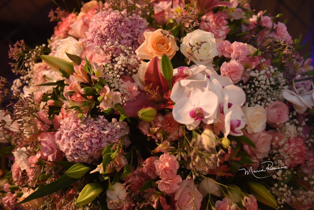Decoração de Vânio Rodrigues encantou a todos pela beleza dos arranjos de flores naturais na festa de Luana