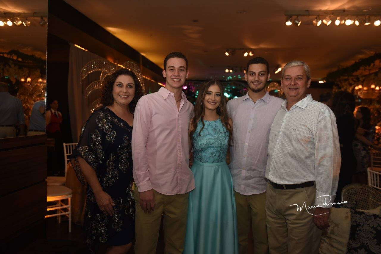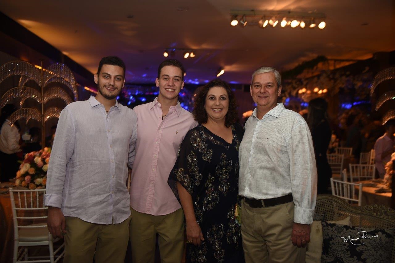 Madrinha de Luana, Ana Claudia com seu marido Toninho Rodrigues da Cunha e os filhos Gustavo e Fernando foram abraçar a debutante