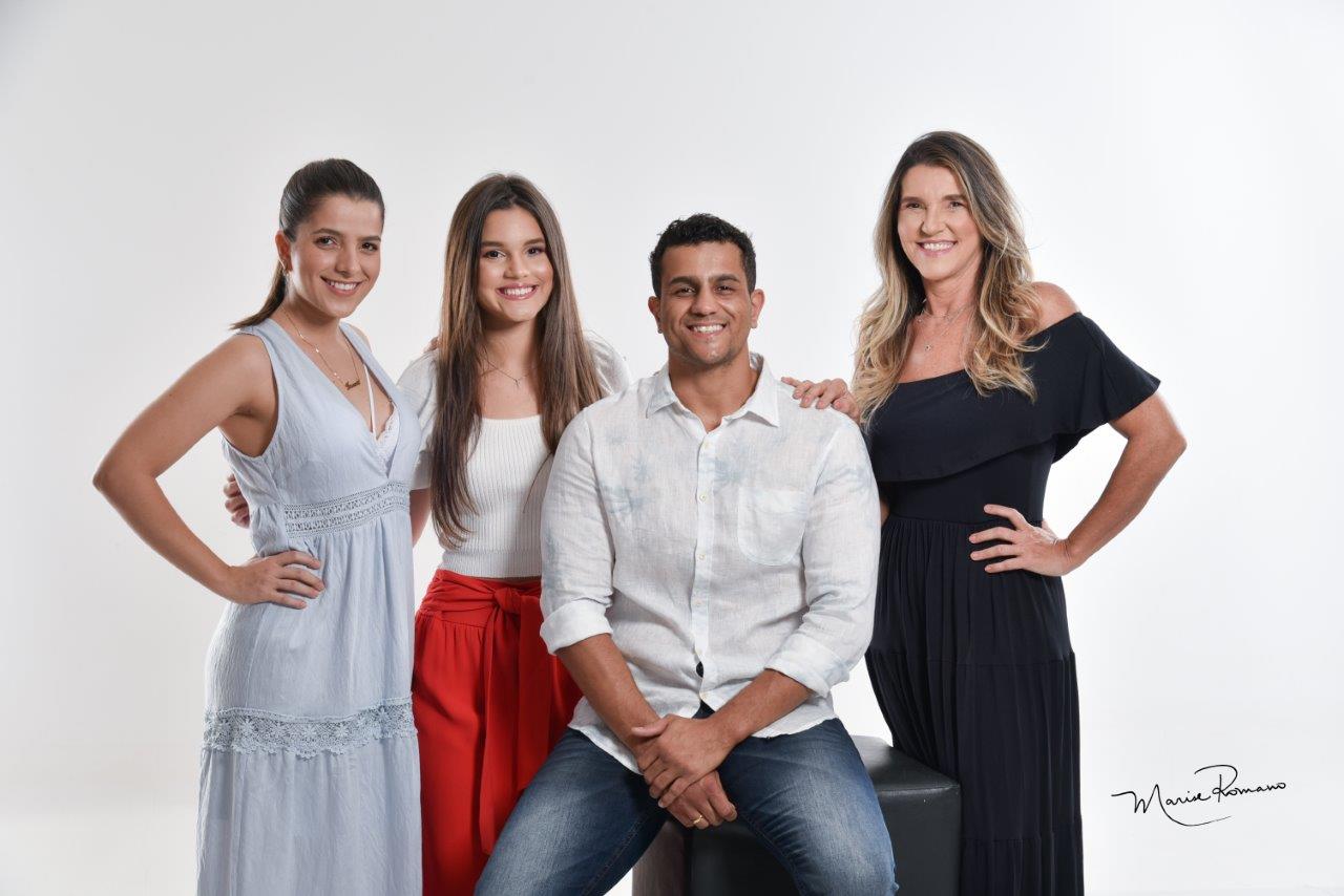Sérgio Augusto, modelo e personal trainer, fez pose para a foto oficial do Dia do Personal Trainer com alunas e seu filho Davi