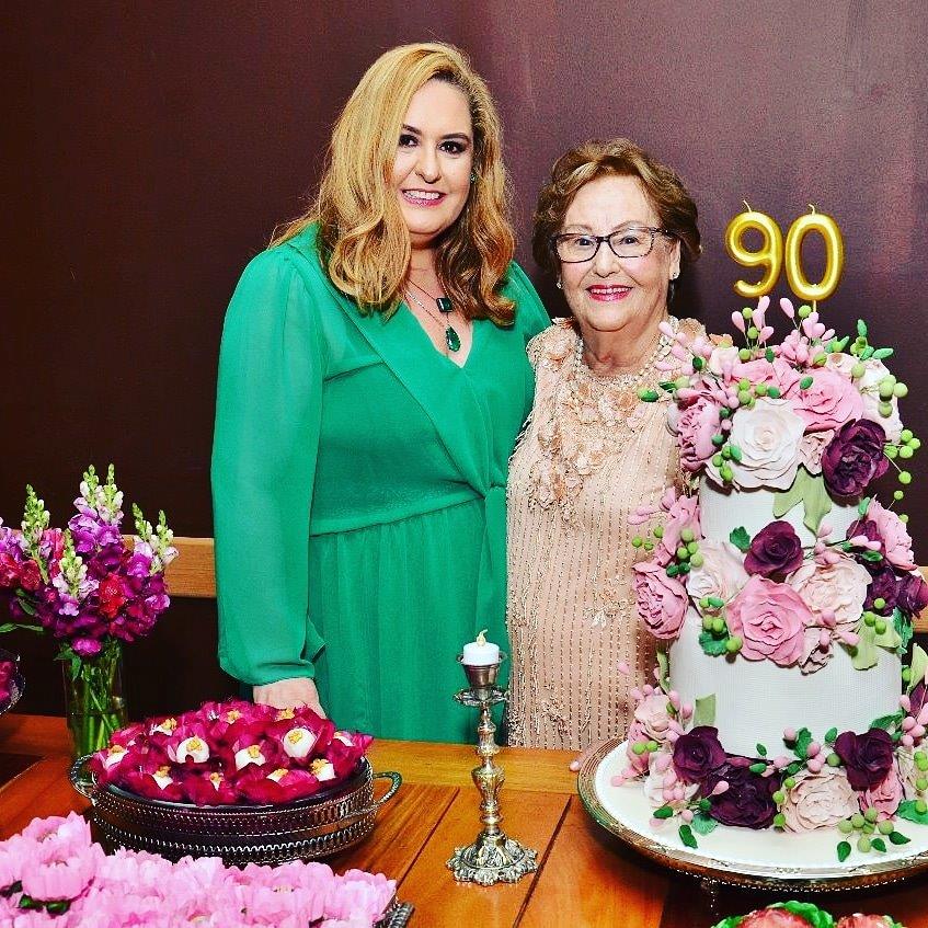 Mariangela Destro, aniversariante do último sábado, ao lado de sua mãe Haydée Destro, em uma lembrança dos seus 90 anos feitos na virada do ano.