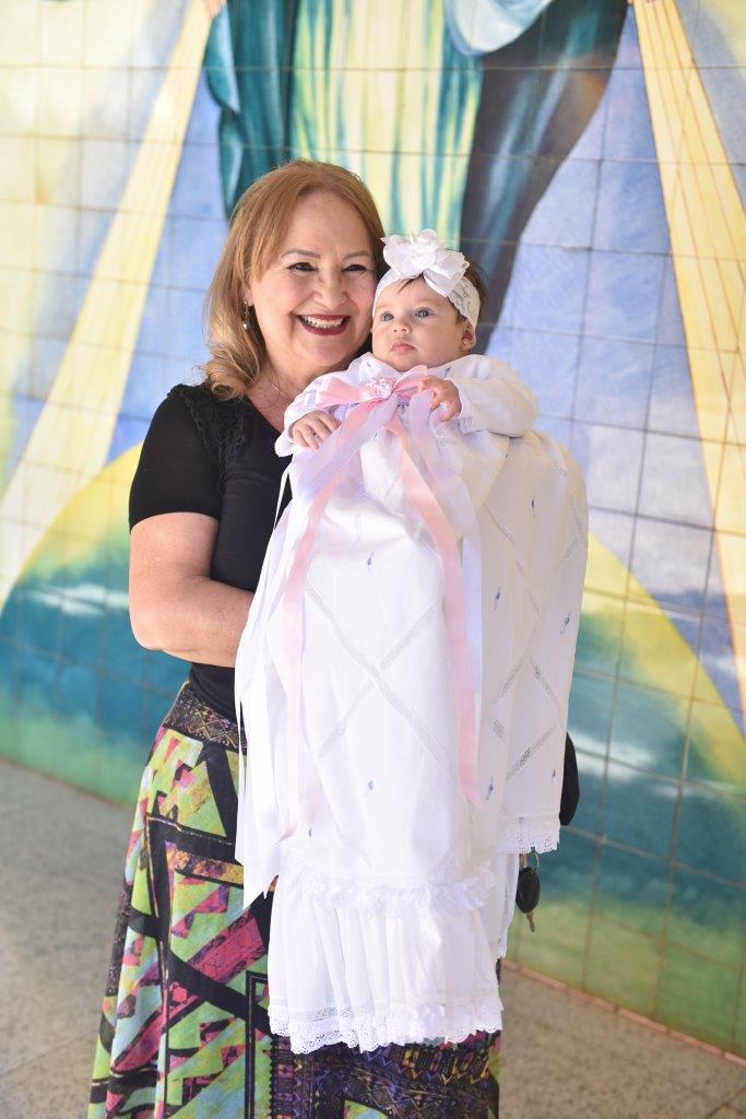 Júlia Cezarini Okano foi paparicada pela avó Lídia Maria Vaz Cezarini, no Santuário da Medalha Milagrosa.