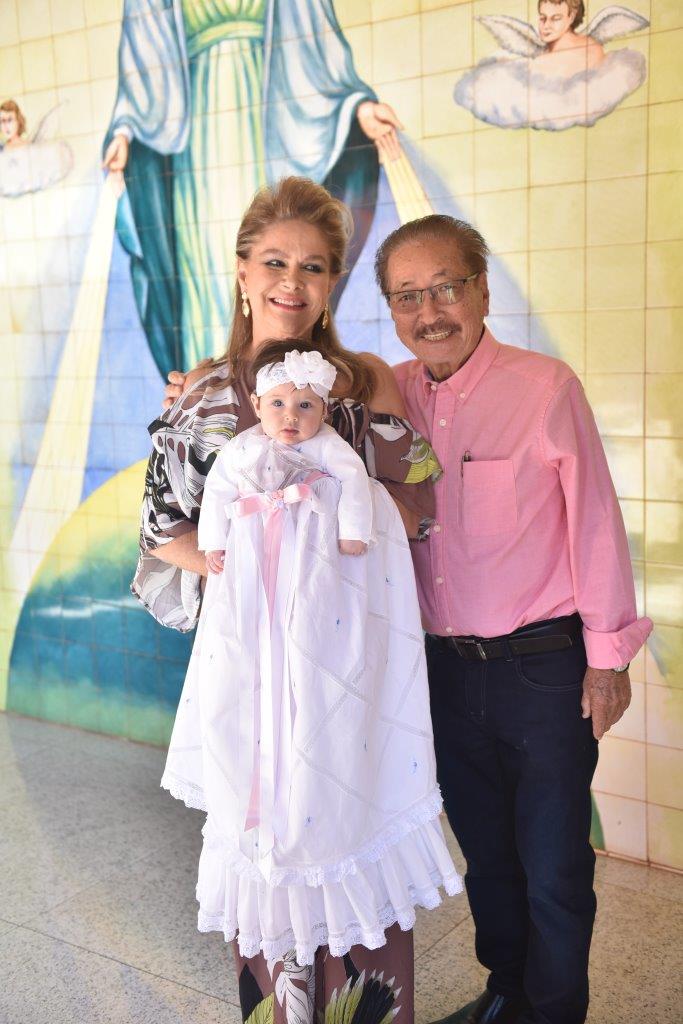Marilda e Dr. Hiroji Okano foram abençoar a netinha Júlia Lazarini Okano em seu batizado no último domingo no Santuário da Medalha Milagrosa.