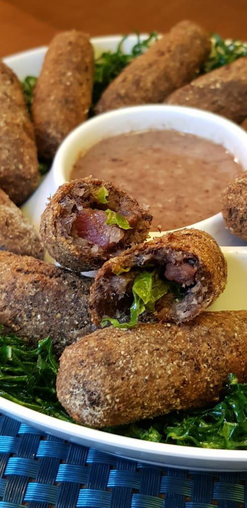 O restaurante @varandaquatrocinco tem um bolinho de feijoada recheado de couve que já é famoso em toda a cidade de Uberaba… Agora, também no delivery.