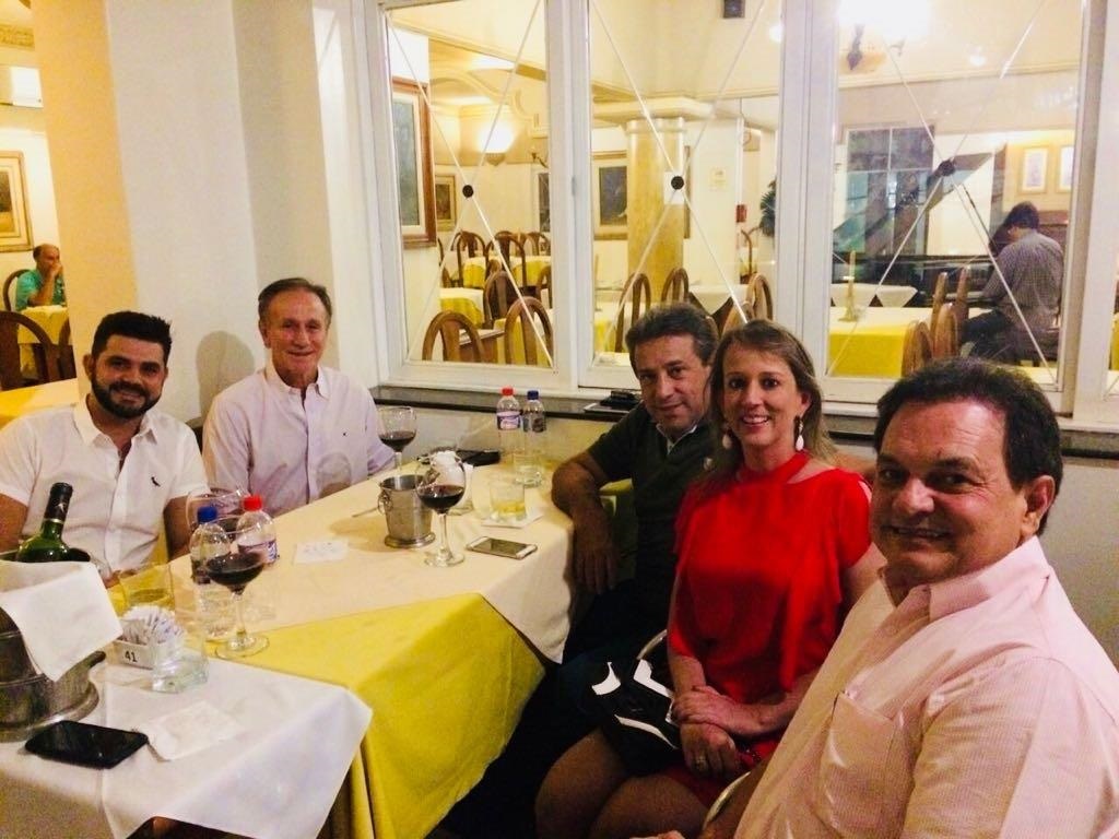 Sempre bem recebidos no restaurante do Hotel Tamareiras, o ótimo Kaká, o prefeito Paulo Piau, o secretário de governo Toninho e sua noiva Janine e o Dep Fed Aelton Freitas