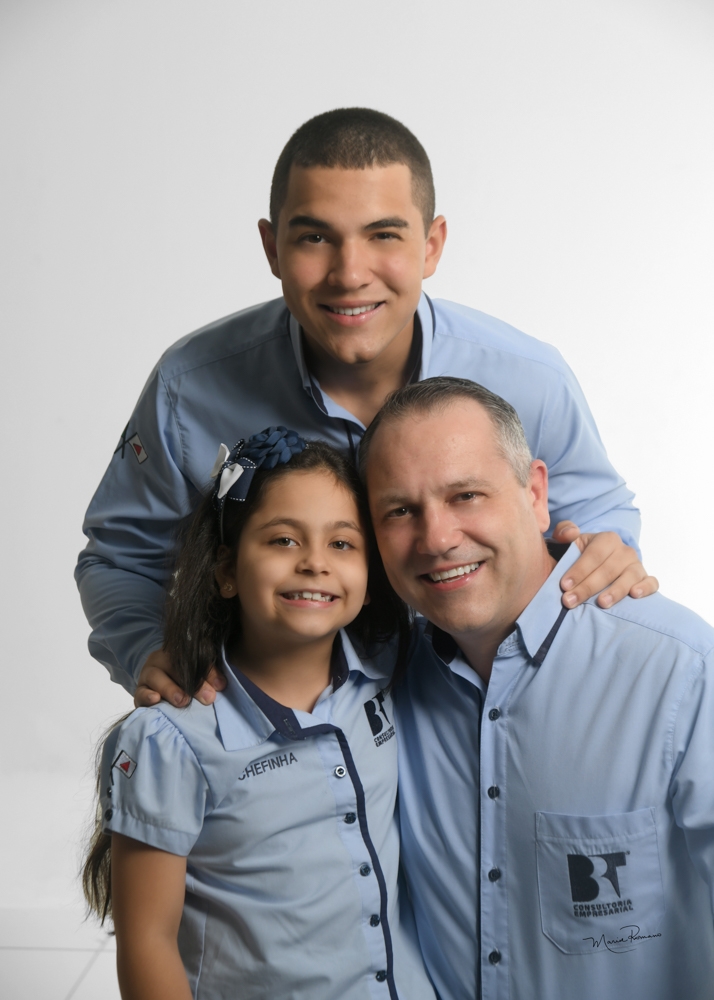 Bruno Ricardo Teixeira, da BRT Consultoria Empresarial, exibe orgulhosos os filhos Bruno e Bruna, já em clima de Dia dos Pais.