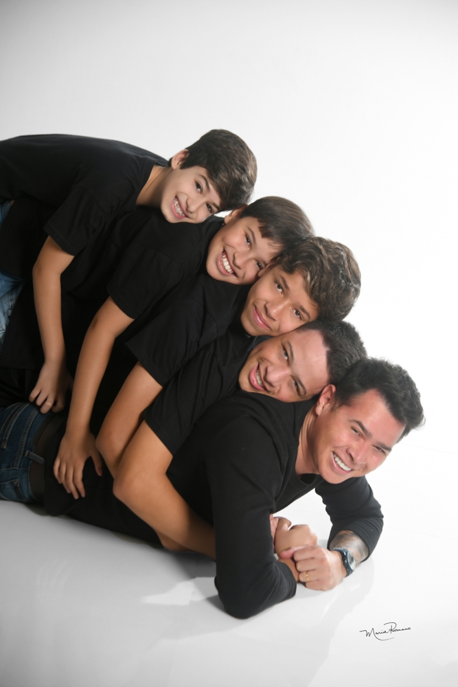 Josiley Borges Silva vai curtir seu Dia dos Pais com os filhos João Pedro, Luís Felipe, Davi e o enteado Miguel.