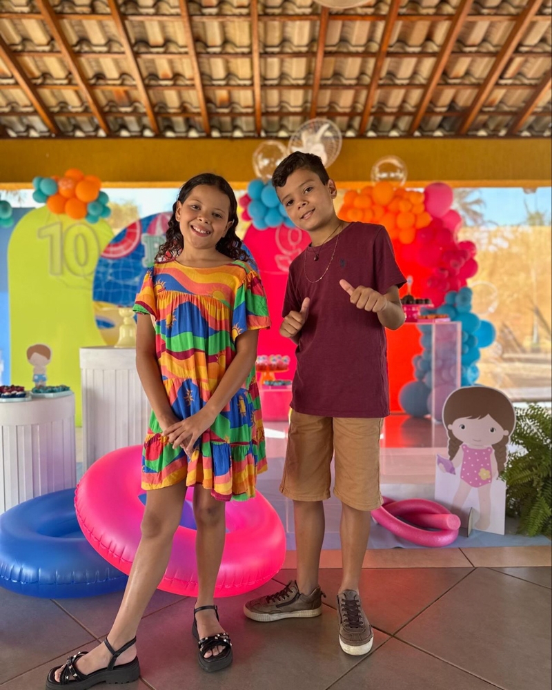 Ian e Manuella Seni Santos ganharam linda festa de aniversário com decoração da @encantardecorações. Eles são filhos de Camila Nunes Santos e Bruno Seni Caetano.