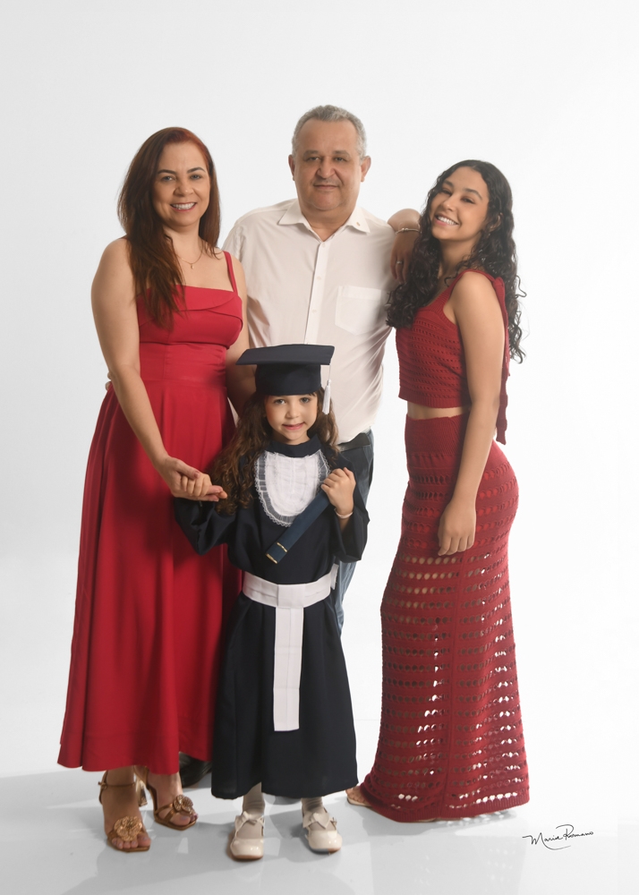 Ana Alice Rodrigues Amaral com os pais Ana Daniela e William Rodrigues e a irmã Sofia estão ansiosos para a formatura do CNSD.