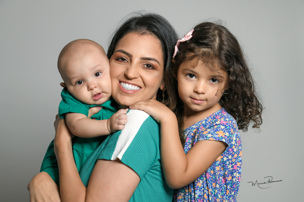 Patrícia Bielert do Nascimento com as filhas Samantha e Sabrina e o filho Saulo Bielert do Nascimento