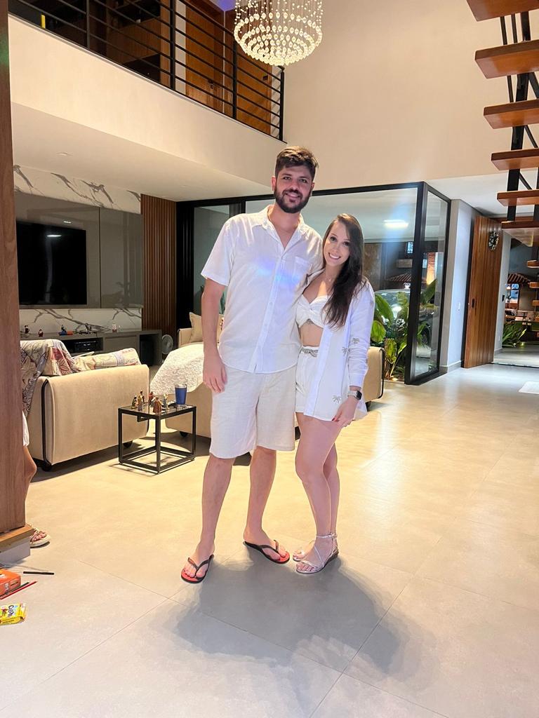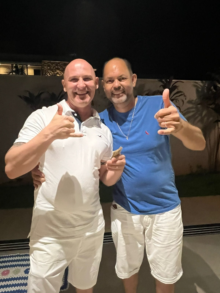 Gustavo Morais curtiu o Réveillon com amigos. Entre eles, o simpático Cláudio Mendes