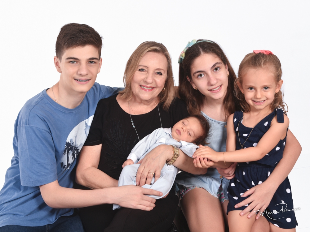 Régia Maluf exibe orgulhosa seus quatro netos, Marco Antonio, Maria Fernanda, Eduarda, e Henrique