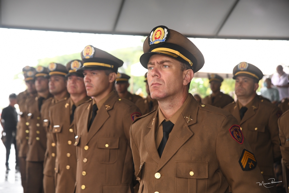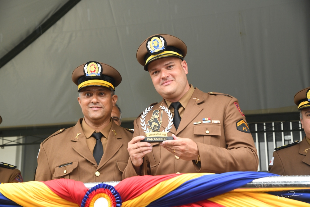 Plínio Porfírio recebeu sua divisa de sargento da Polícia Militar no dia 30 de dezembro, pelas mãos da esposa Beatriz Lazarini