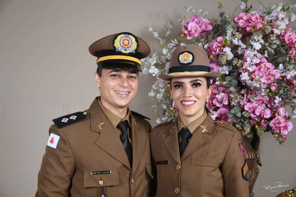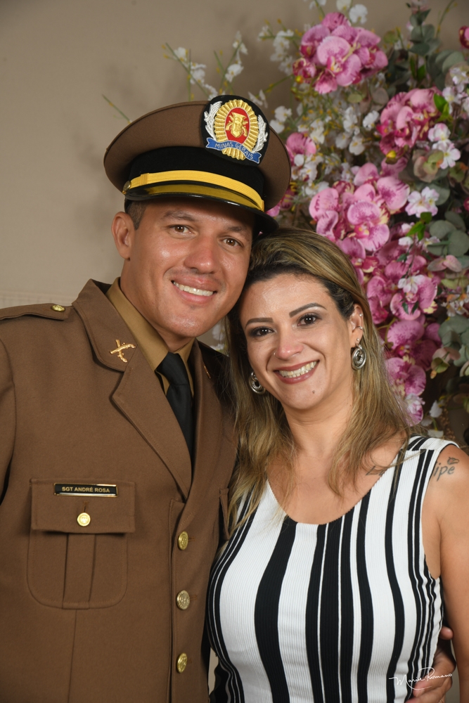 André Rosa e Juliana Virgílio estão felizes com a divisa de sargento recebida por ele no dia 30 de dezembro, no 4o. batalhão da Polícia Militar de Uberaba