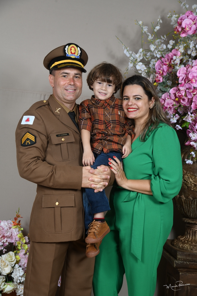 Sargentos Luciana Luna e Edson Ferreira com o filho Heitor Luna ficaram felizes com a entrega de divisas feita no dia 30 de dezembro