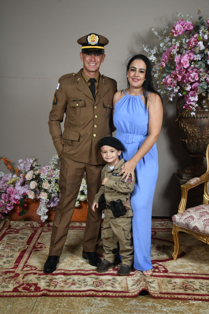Wellington Henrique Ferreira recebeu sua divisa de sargento da Polícia Militar pelas mãos da esposa Alessandra Mannarino e do filho Lorenzo