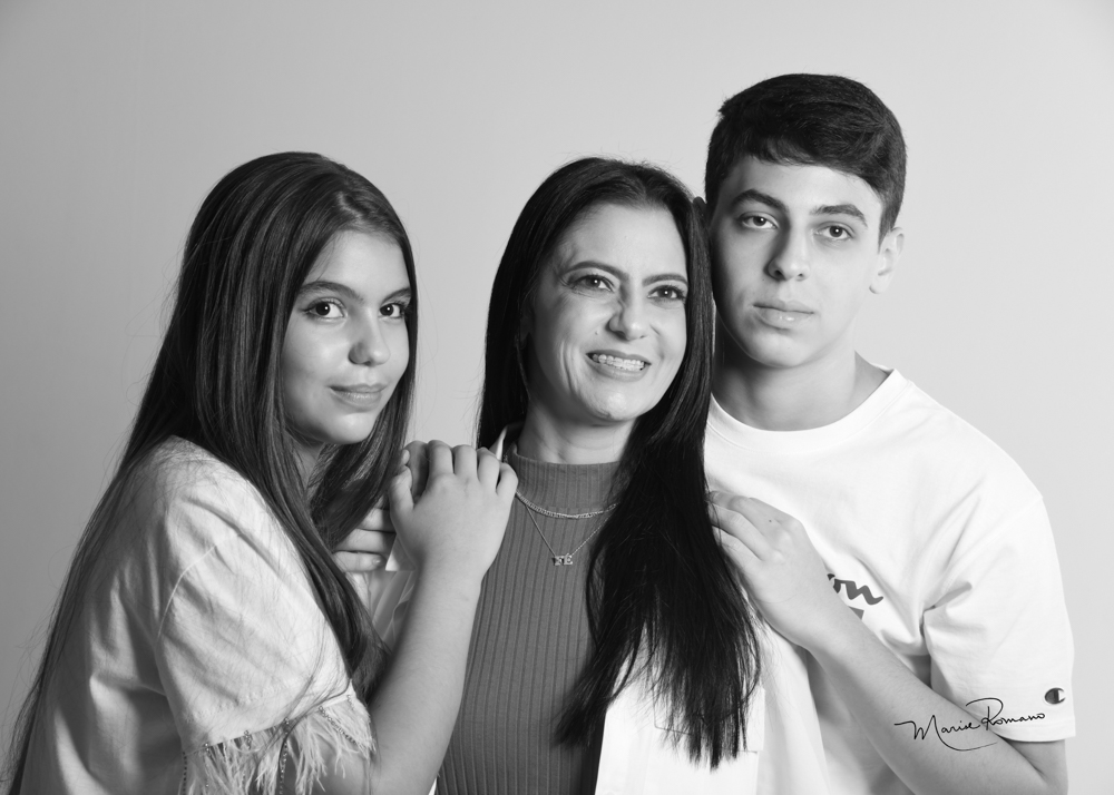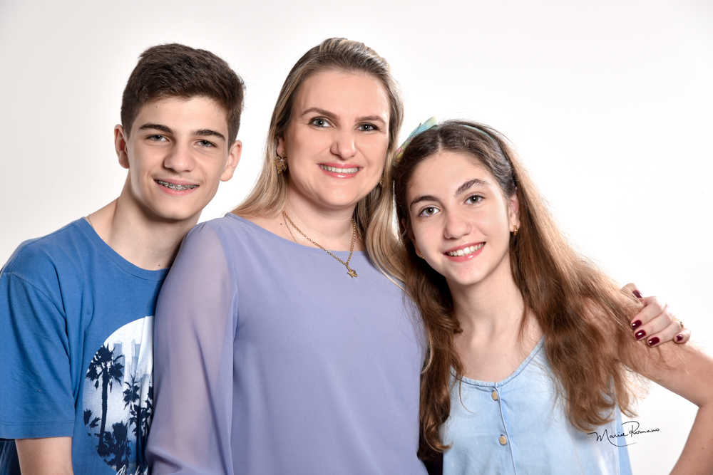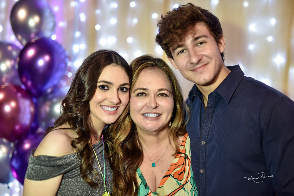Marinês Maluf Zica com os filhos Marco Antônio e Maria Fernanda Giordani