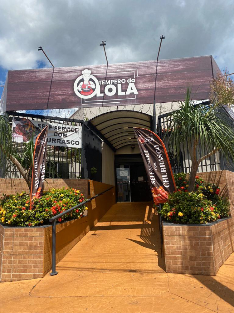 O restaurante de self service Tempero da Lola oferece muitas opções de saladas e carnes assadas na churrasqueira.
