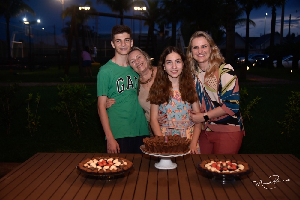 Heloísa Cobo Alves Flávio, Marileide Oliveira Cobo e Walter Alves Flávio receberam pessoas queridas no Buffet Recanto do Lago para cantar os parabéns para a debutante