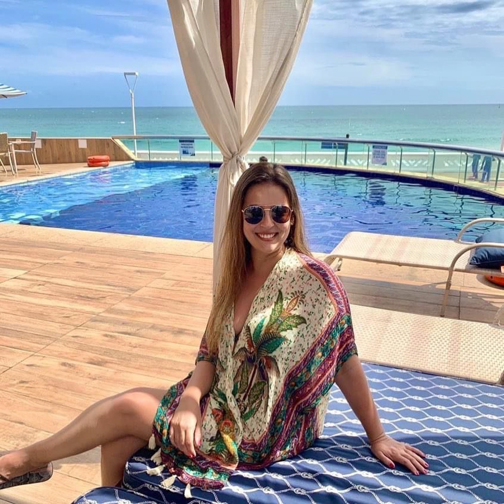 Patrícia Souza Silva é arquiteta. Seus olhos cor de mel compoem a beleza com os cabelos claros e o rosto perfeito