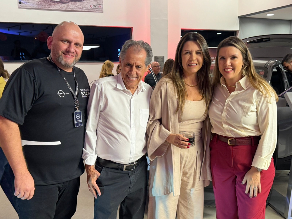 Guilherme Spirandeli Tavares recebeu Ivair Camargo com a namorada Grasiela e a prefeita Elisa Araújo no lançamento Kicks Nissan.
