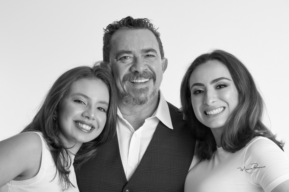 Pedro Cury Junior com as filhas Letícia e Fernanda Lemos Cury.