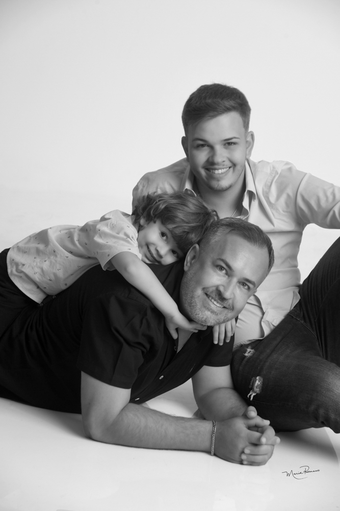 Léo Naves com os filhos Enzo Cruz Naves e Benicio Caetano Naves.