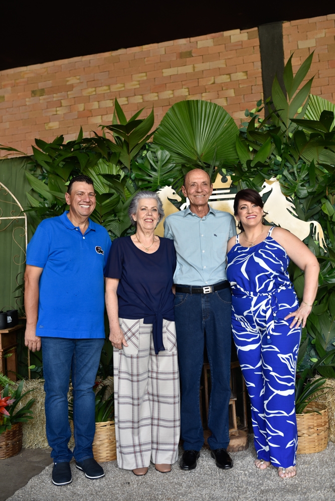 Jacqueline e Rodrigo Gondim apoiaram toda a festa de aniversário do tio dele, Maria Cândida Rodovalho e Lauro Ferreira Cândido