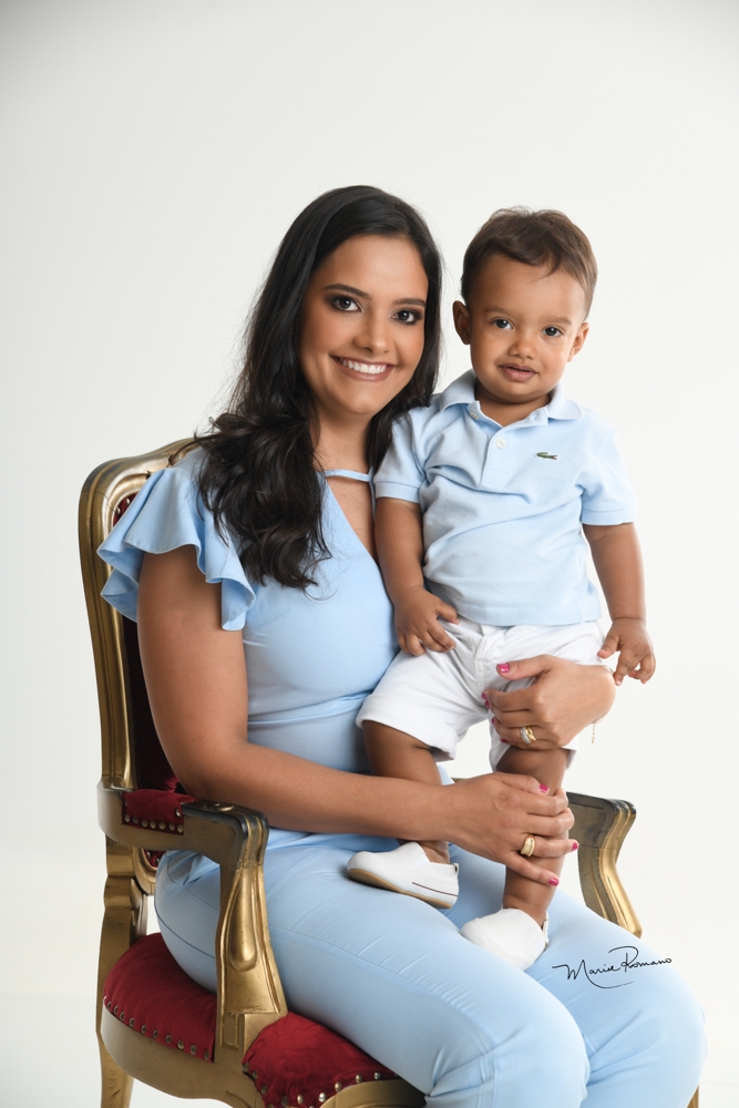 Alessandra Pereira Mendes e o filho Théo deixam a semana do Dia das Mães toda azul