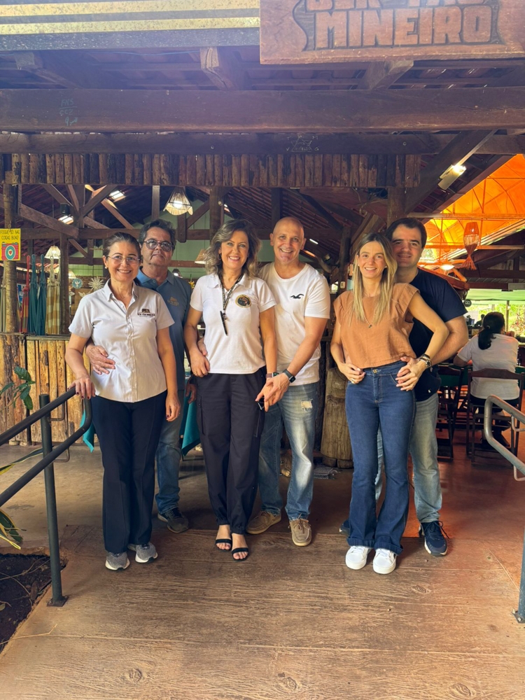 Os empresários do restaurante Ser Tão Mineiro Tina e Beto, com o filho Gabriel e sua esposa Manu receberam os diretores do Asilo Santo Antônio com alegria.