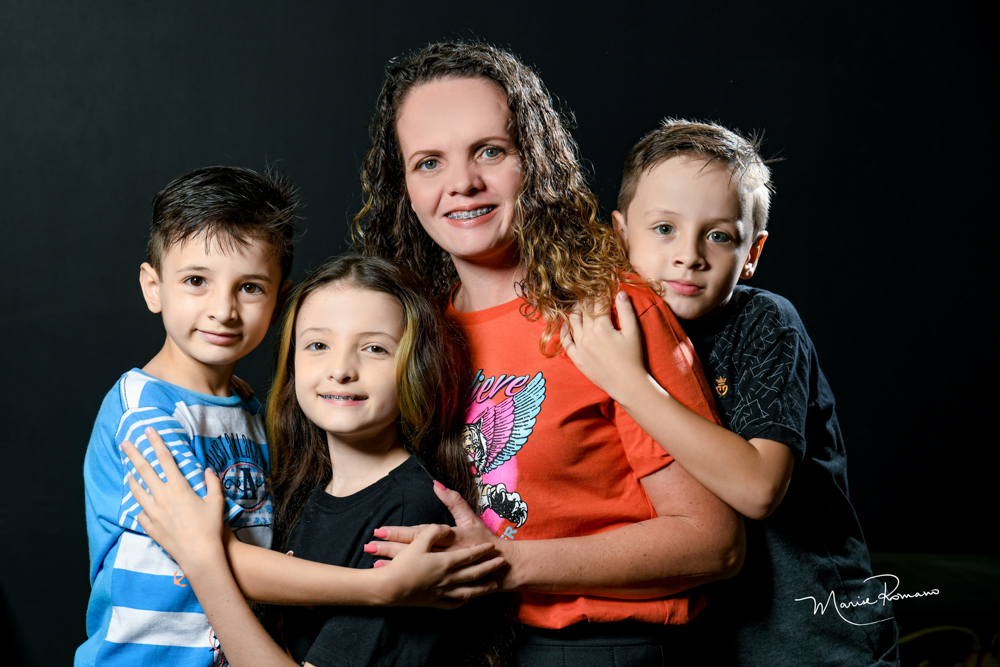 Juliana de Souza Rodrigues com os filhos Mariana, Pedro e Mateus de Sousa Rodrigues Campos