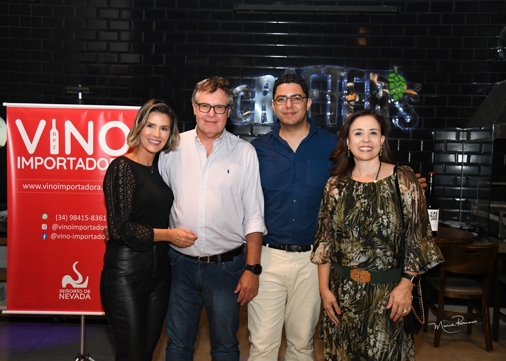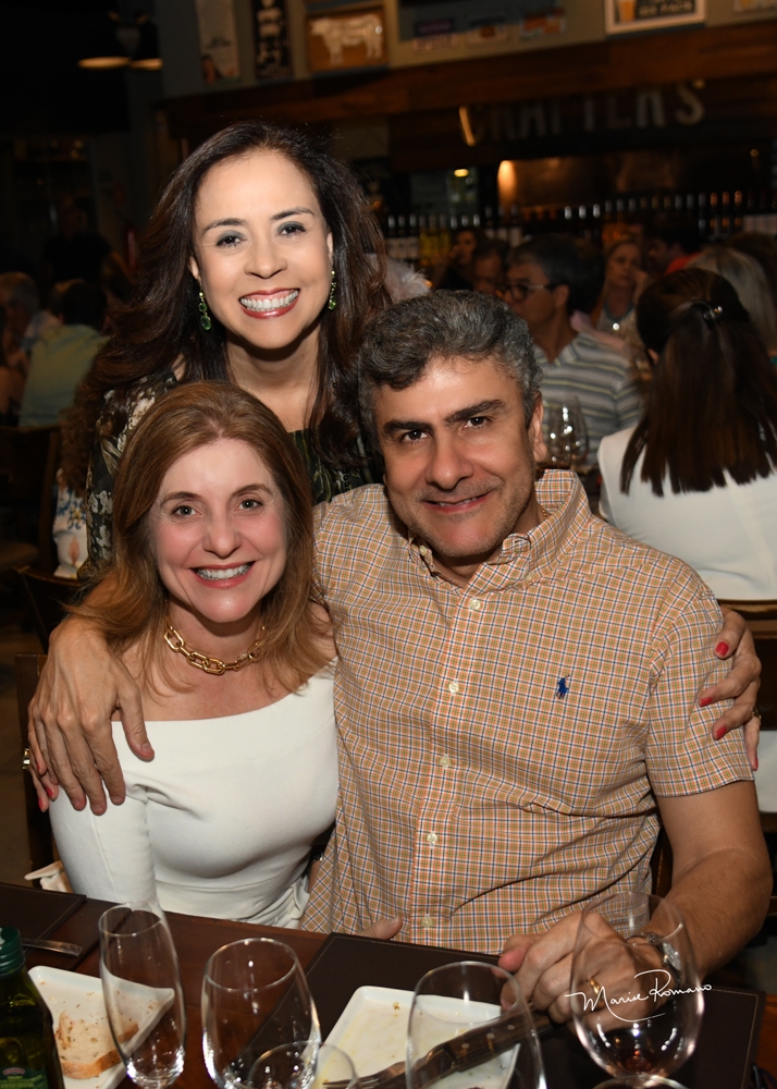 Miralda Lavor com os amigos Cynthia e Alysson Junqueira de Moraes prestigiram o evento da Vino Importadora no Crafter´s na última segunda-feira.